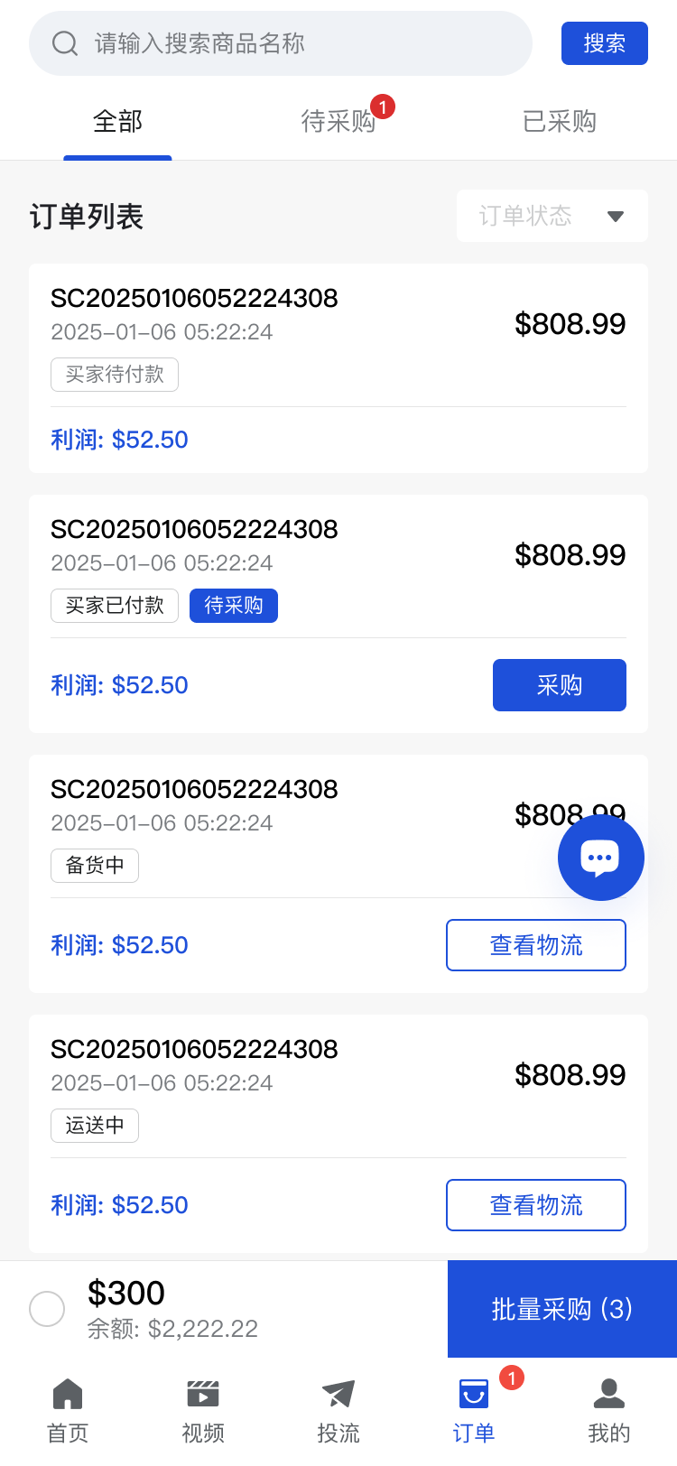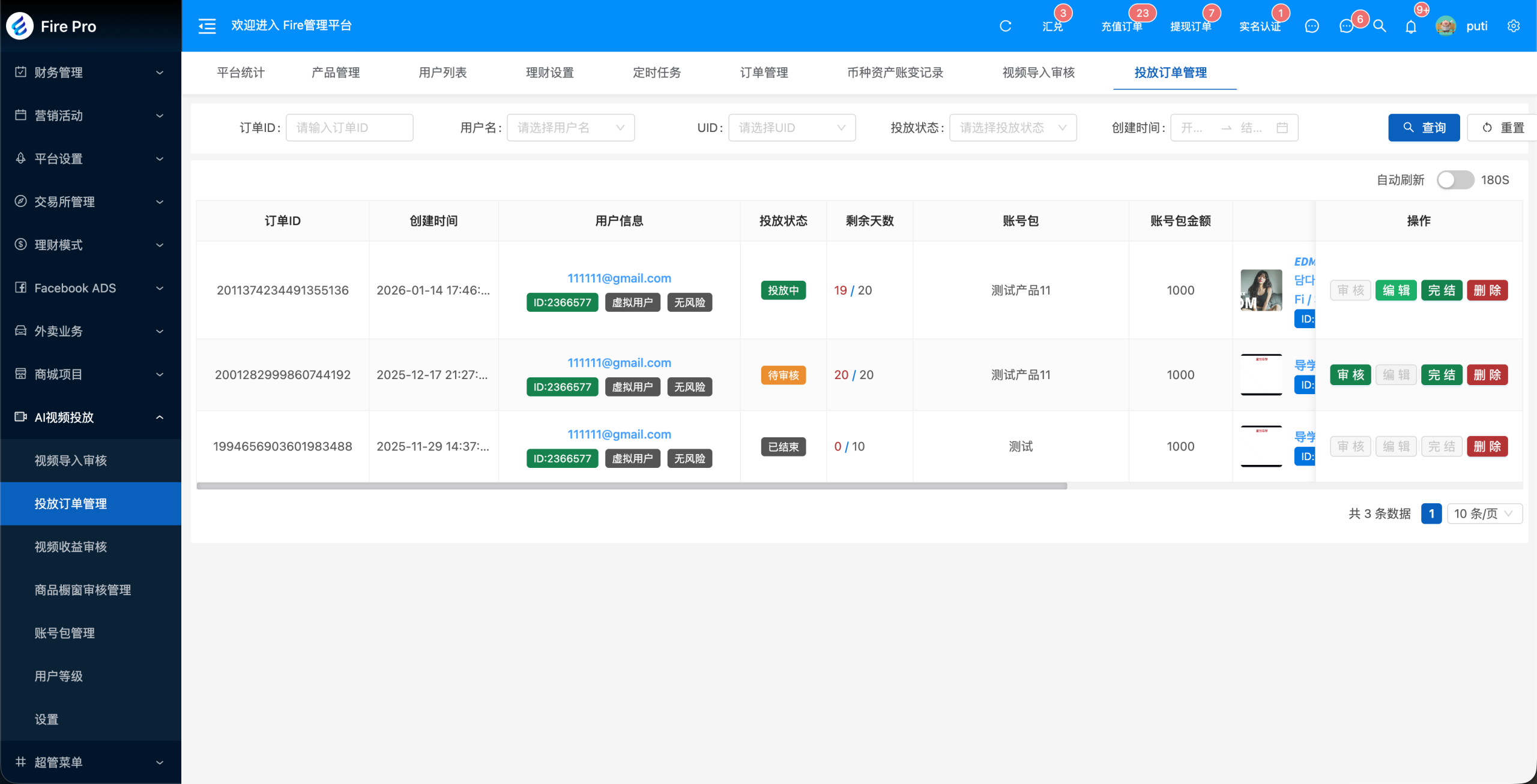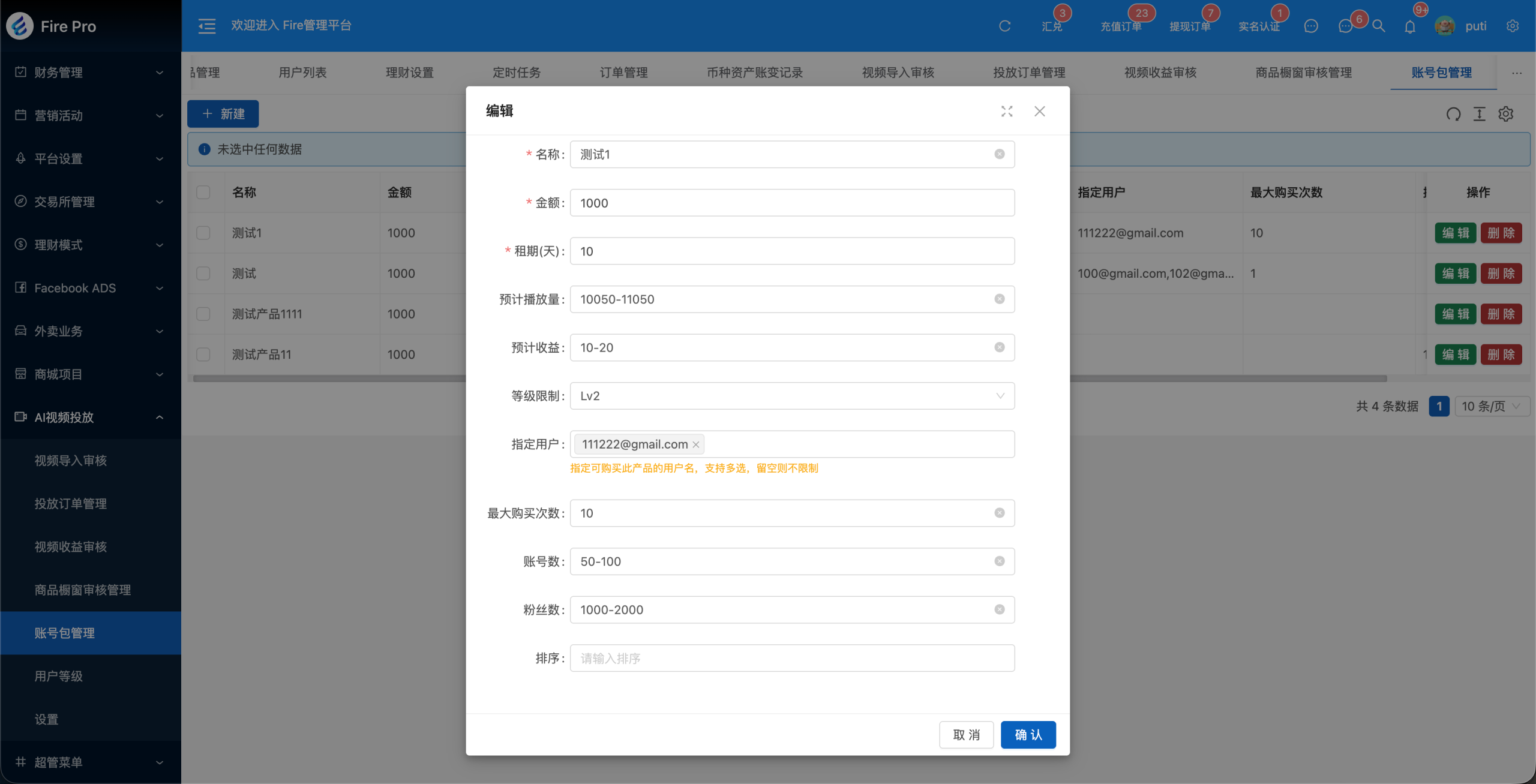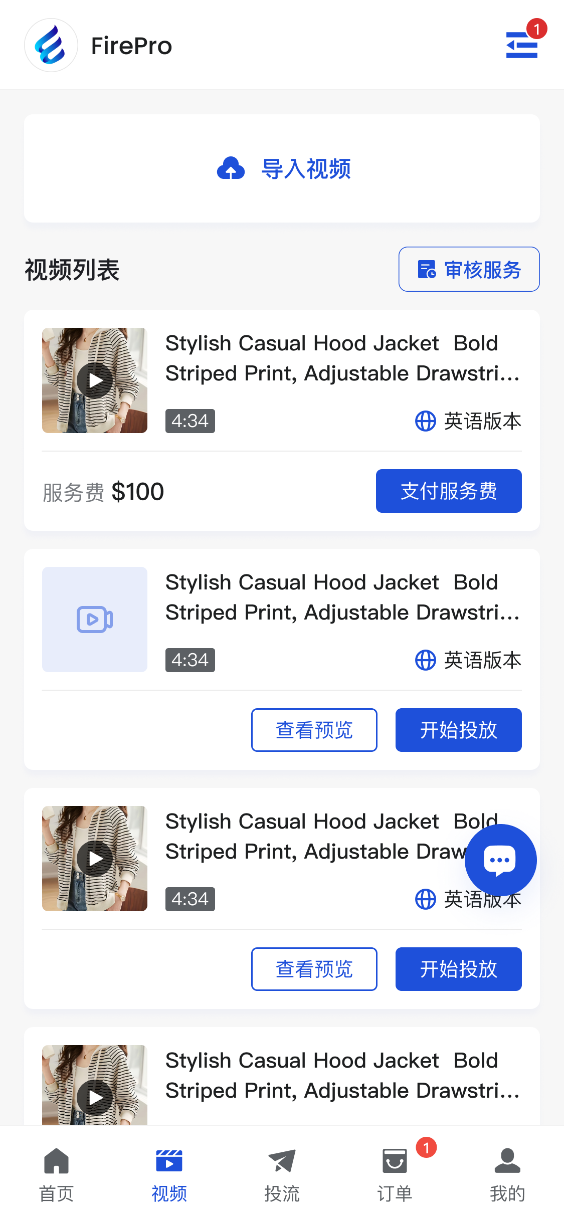 - 用户选择视频并下单租赁账号包后开始投放;