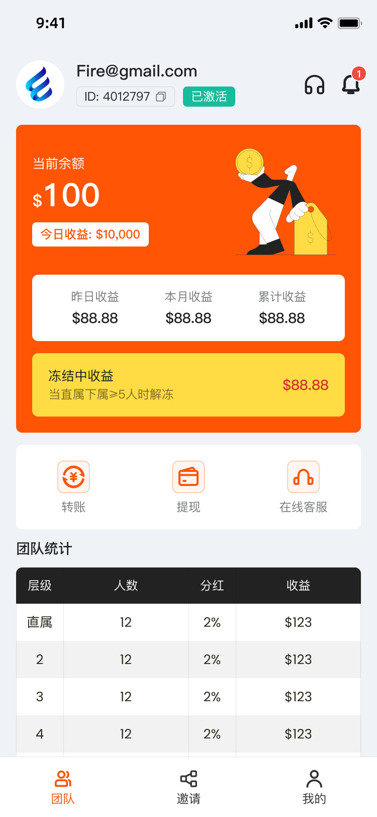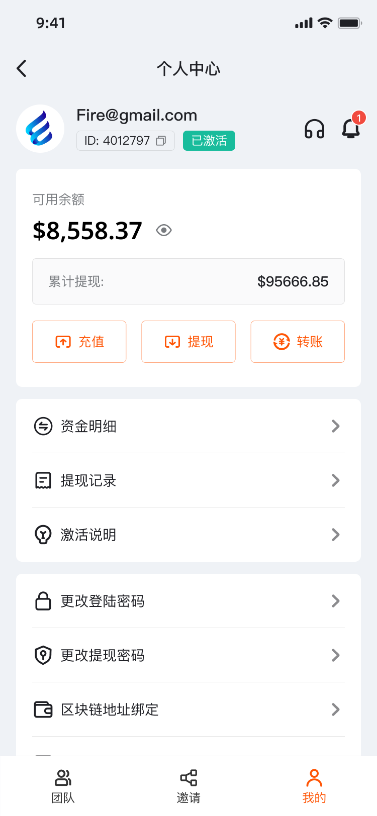 • 支持用户间转账