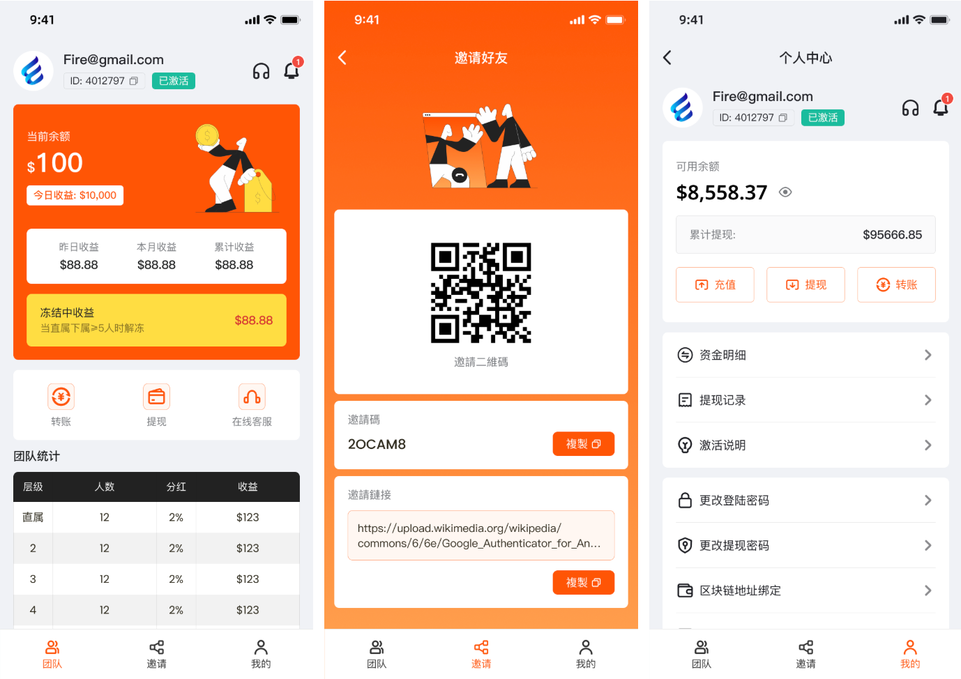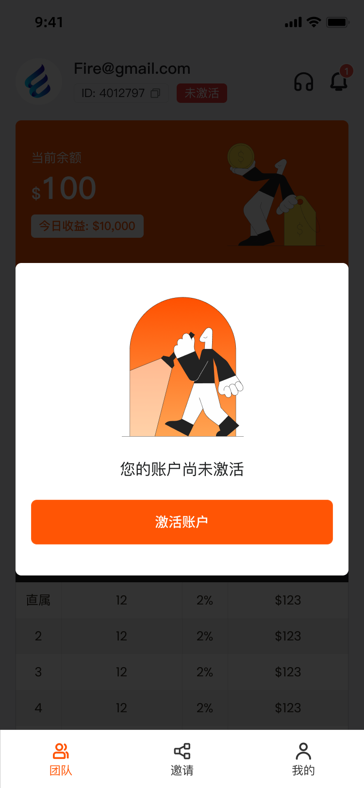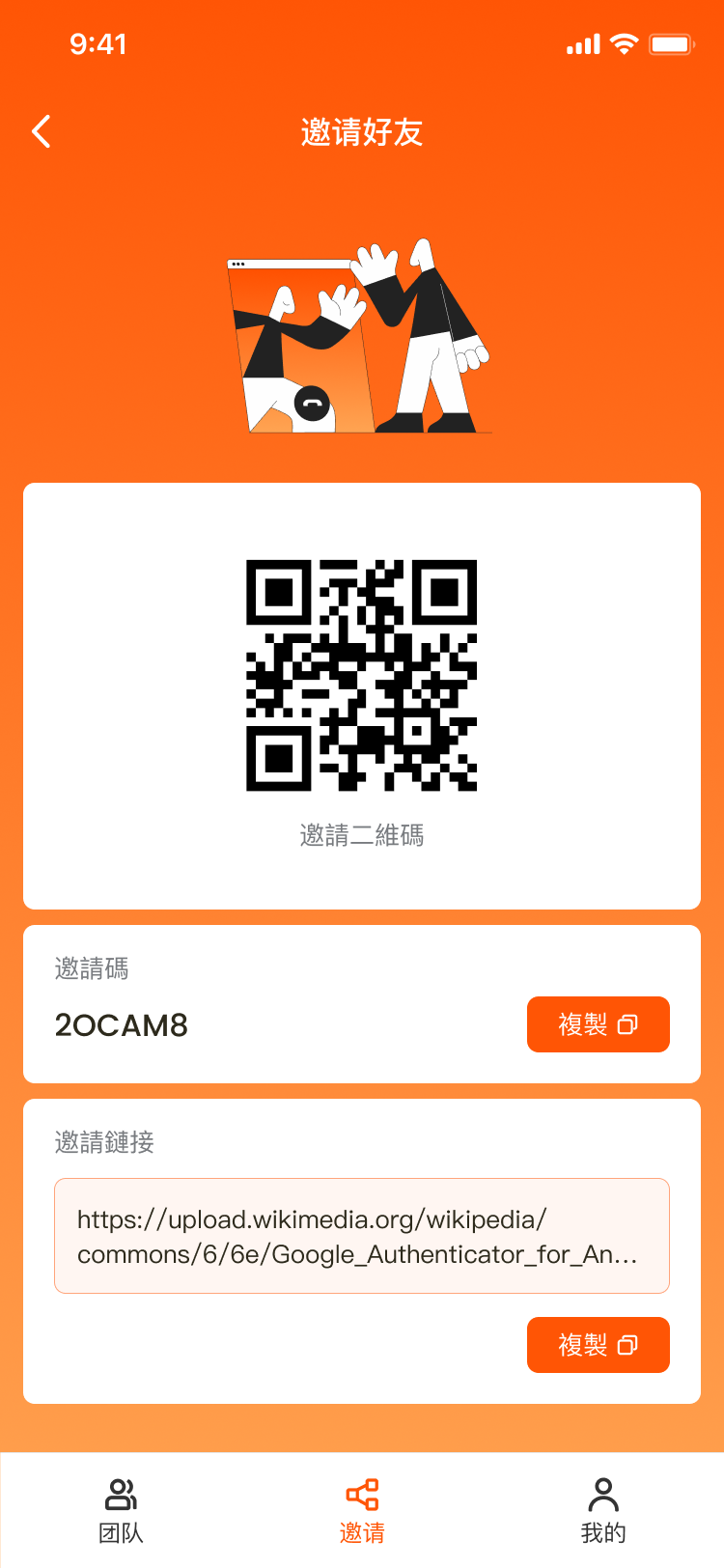 • 团队邀请模块