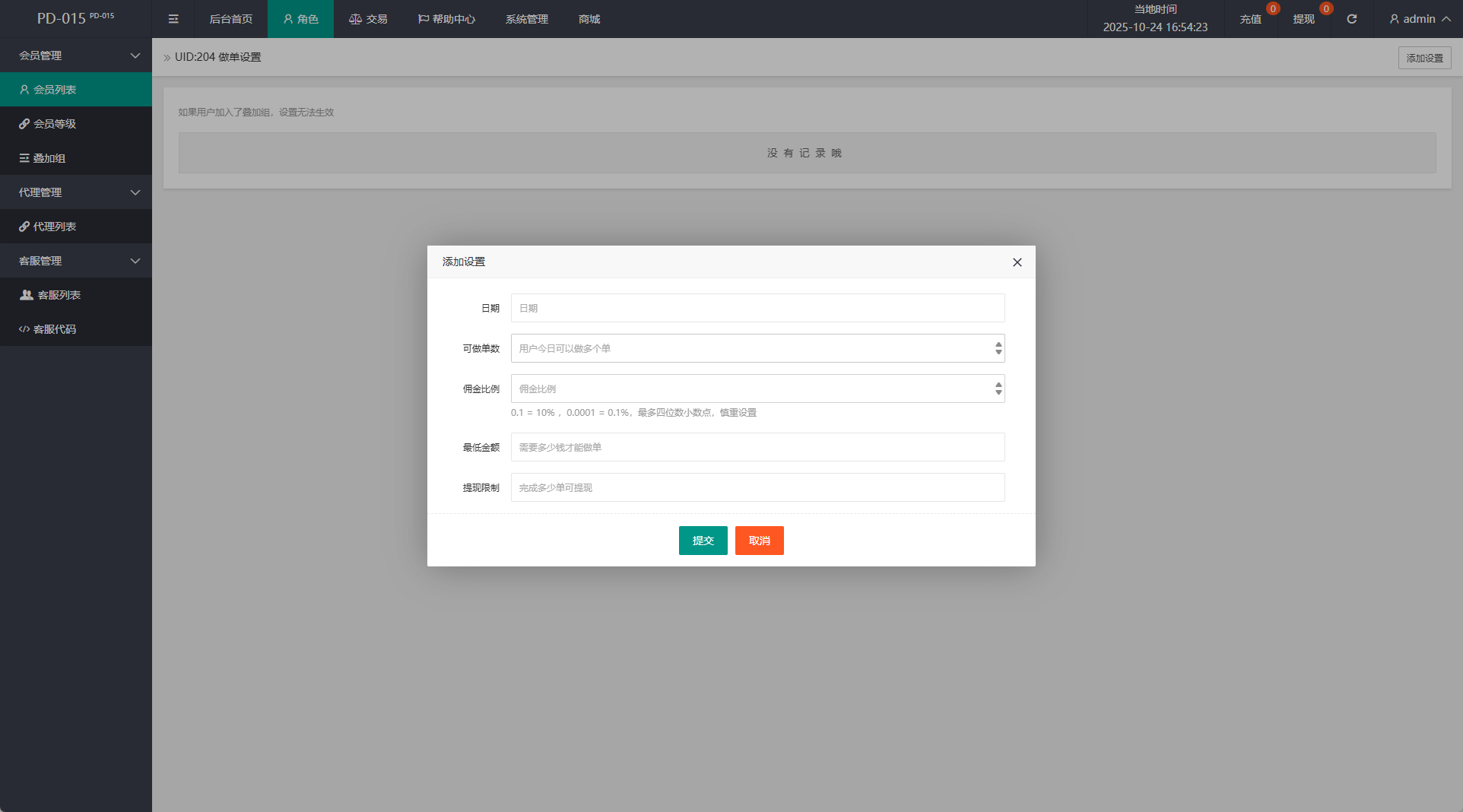 - 支持为指定用户设定专属做单规则;
